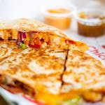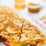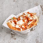 Bułka pszenna 40 cm, mix serów, pieczarki, Kraftowa szarpana kura. -
